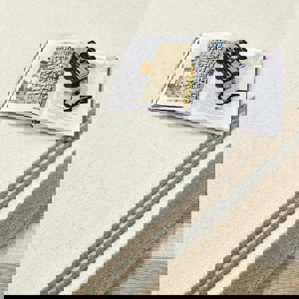 Our Piper rug features a modern and simple border design, with a thick border edge and two thinner borders in the same contrasting colours of in taupe and cream