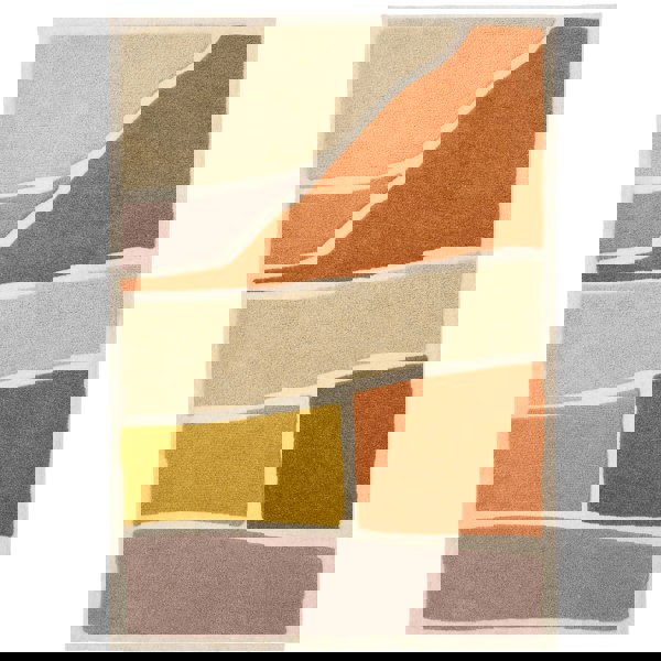Inspired ny natural rock formations, this rug features abstract shapes in tones of terracotta, ochre and taupe, encased by soft ivory lines