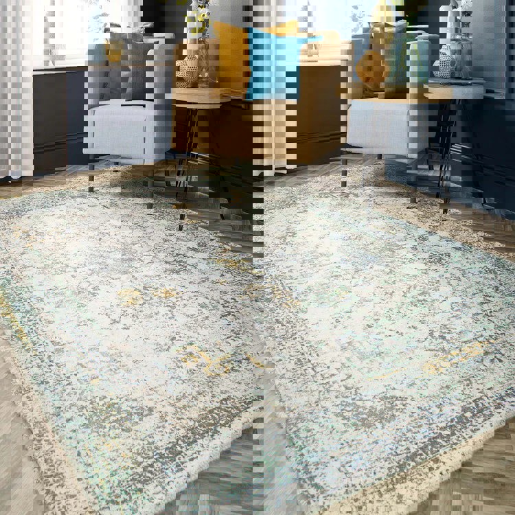 This Vogue rug has a traditional Persian design that has been heavily distressed to give it a classic vintage look