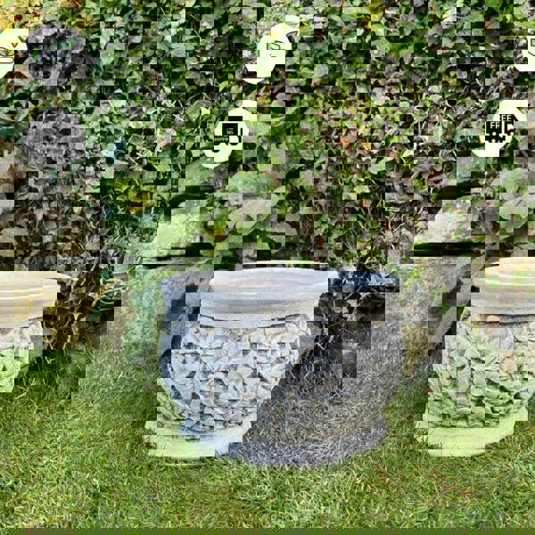 Solid stone cast planter with stunning 3-D garden flowers and leaves around the whole pot. A beautiful addition to outdoor or indoor use. The planter is brand new but designed and dyed to look perfectly aged, pot has drainage. A beautiful example of quality stoneware which cannot fail to impress. An impressively decorated outdoor arrangement and genuine quality. Stunning detail and charming sophisticated design. A perfect little planter will make a great gift to anyone who has a garden.