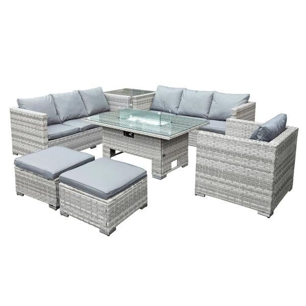 Designed for relaxed outdoor living, the Oseasons Malta rattan 9 seat rising firepit corner set brings deep seating comfort to your garden or conservatory. Finished in dove grey, it creates an inviting space for stretching out with family or hosting friends, with a layout that suits both everyday lounging and more sociable occasions.