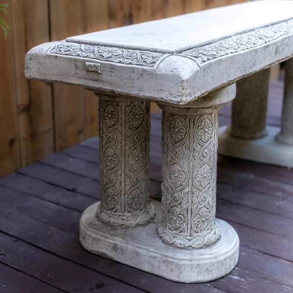 Elevate your garden with timeless elegance using this Large Stone Ornate Bench Seat. Expertly crafted from solid stone, it features intricate classical carvings on the legs and along the edges of the seat, offering both visual charm and practical seating. This decorative bench makes a perfect addition to gardens, courtyards, patios, or heritage-style landscapes. Built for durability and designed to blend naturally with outdoor surroundings, it serves as a beautiful and functional focal point all year round. Delivered in three separate pieces: two legs and one seat for easy assembly. No adhesive required – the weight of the bench securely holds it in place on the legs.