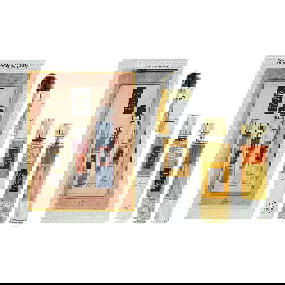 Ard Al Zaafaran Oud Romancea is a three-piece fragrance set designed to scent both you and your space. Centred around an eau de parfum, it is paired with a perfume mist for lighter, more flexible wear and an air freshener to bring the same character into the home.