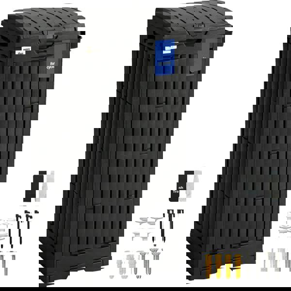 Practical details make it easy to live with outdoors. A built-in bag retainer helps hold liners in place, and a removable bottom tray is designed to catch drips and leaks for simpler cleaning. For added convenience, an integrated side ash holder comes with a bag of sand, and the bin can be secured in position using the included ground stakes, expansion screws and suction cups. Assembly is tool-free with a snap-fit design.