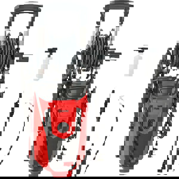Easy home cleaning of stubborn tasks - this Outsunny portable high pressure washer. The 1800 W motor and 150-bar pressure is powerful - provides 420 litres of water per hour for superb cleaning that deals with a variety of dirt and stains. The spray angle adjusts between 0-75°, making it easy to direct the pressured water to a position you require. With the six-metre long hose, five-metre long power cord and wheels, you can move it around and reach long distances easily.