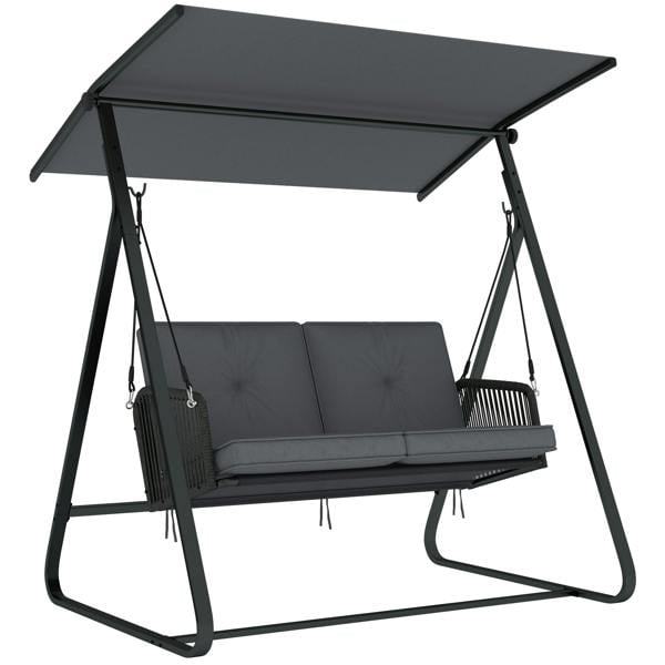 Create a calm corner outdoors with the Outsunny 2-Seater Rattan Swing Chair, a freestanding garden swing designed for relaxed seating on the patio or in the garden. Finished in dark grey, it pairs a woven PE rattan seat with a steel frame, bringing a considered look to everyday outdoor lounging.