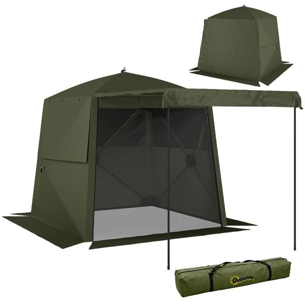 Designed for flexible outdoor cover, the Outsunny Waterproof Pop Up Gazebo with Awning and Sides creates a sheltered space with the option of added privacy and airflow. Three mesh windows and a door help keep the interior ventilated, while the gazebo-style structure is made for quick set-up and takedown when you want shade on demand.