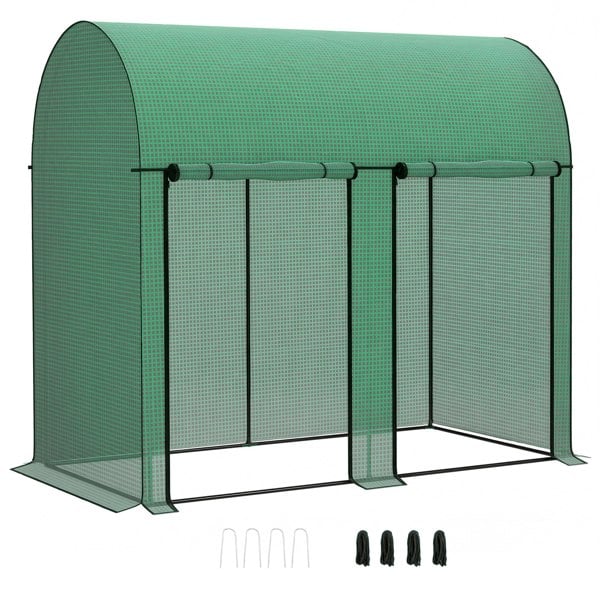 No more worrying about plants and flowers freezing, thanks to this Outsunny tomato greenhouse. The two front doors make access super easy and can be held up in place if needed. Enough vertical space is designed for climbing plants like cucumbers and tomatoes to grow. The plastic cover offers protection against outer weather, whilst creating humidity for plants to grow. Comes with accessories to pin to the ground.
