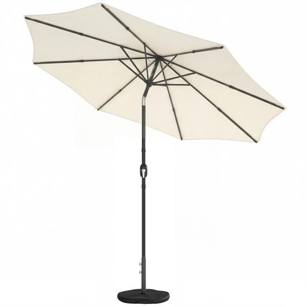 Enjoy easy, everyday shade with the Outsunny 2. 7 m garden parasol umbrella, designed for relaxed outdoor living without the hassle. Supplied with a cross base and fillable sandbag, it offers reassuring stability straight out of the box. When the day is done, the retractable rib design folds in neatly for a more compact shape that's easier to store. Finished with a UPF 30+ polyester canopy with tilt function and a smooth hand crank, it's a simple, comfortable solution for gardens.