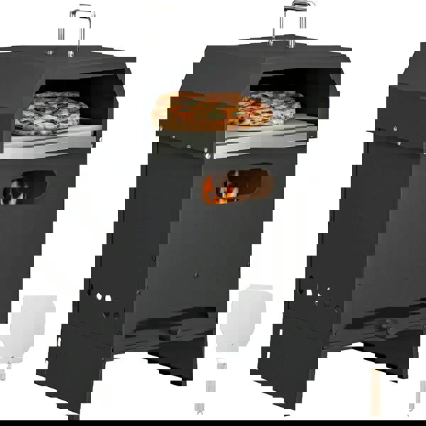 A pizza stone and built-in vents help promote even heating for a crisp, stone-baked base, while the removable tray makes ash clean-up simpler after cooking. Compatible with wood, pellets or charcoal, it lets you tailor the fuel to the style of outdoor meal you’re planning, from pizzas to grilled favourites.