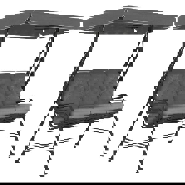 Make the most of your outdoor space with the Outsunny three-seater garden swing chair. Spacious enough for friends or a serene solo retreat, it's your go-to for lazy afternoons. The adjustable canopy offers UV protection and enables you to find just the right shade as the sun moves. Crafted with a rust-resistant metal frame and anti-skid feet, it's built for stability while you unwind in padded comfort.