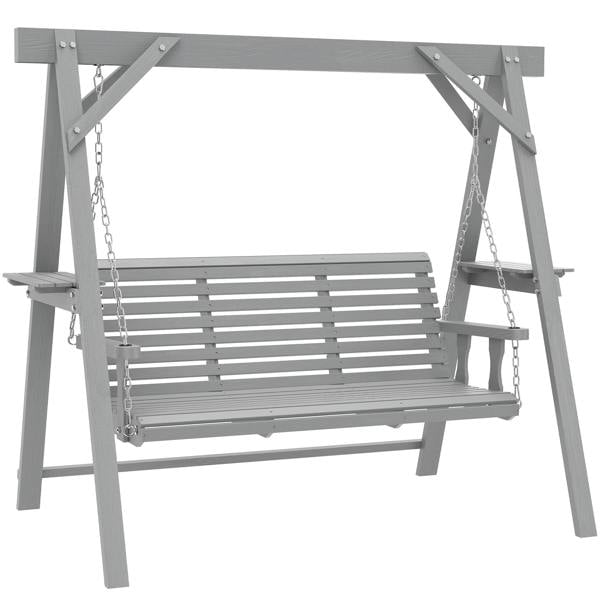 Beautiful outdoor seating for you and company - this Outsunny garden swing chair. Made from fir wood, this is a strong piece, with a protective paint finish making it suitable for outdoor use. Comes with handy side tables to keep a drink and more close by. With a high, slanted back and armrests, plus with adjustable seat height and angle, you'll keep supported whilst relaxing.