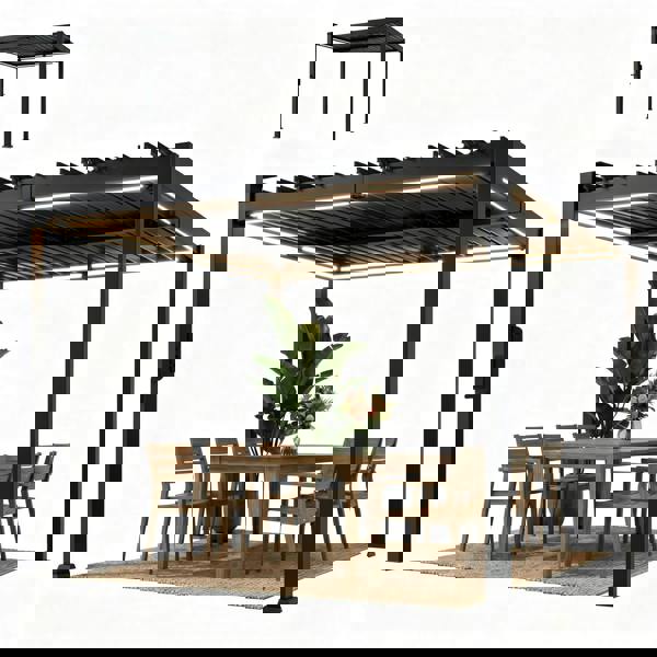 Designed for relaxed outdoor living, the Outsunny 3 x 3 m Louvered Pergola brings flexible shelter and gentle evening light to your patio or garden. Built-in solar LED tube lights illuminate the space as night falls, creating an inviting setting without the need for wiring. For added convenience, the solar panel can be charged by sunlight for everyday use, with USB charging available when you need a faster power boost.