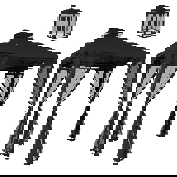 Designed for outdoor entertaining, the Outsunny Metal Gazebo offers a sheltered space for garden gatherings, with a black canopy and a powder coated metal frame. The tough polyester fabric is made to block UV, helping to keep conditions more comfortable in strong sunlight.