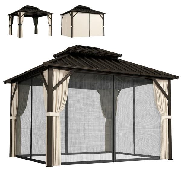 Designed for outdoor living, the Outsunny Hardtop Gazebo Canopy brings a more sheltered setting to your garden, with a powder-coated galvanised steel roof for rainproof cover and UPF50+ sun protection. A double-tier design works with the included netting to encourage ventilation while helping keep unwanted guests outside, making it a considered choice for relaxed entertaining and everyday use.