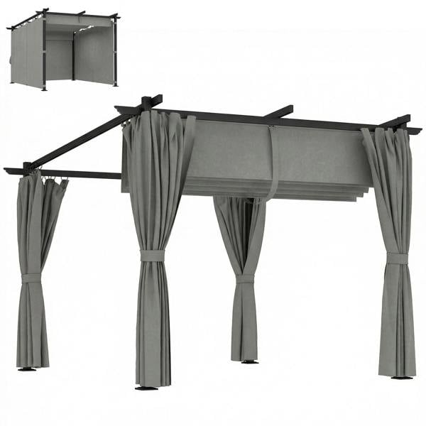With a retractable roof and three side curtains, it's easy to tailor your outdoor time with this Outsunny 3 x 3 m garden pergola. The copted canopy provides UPF30+ protection, and shields you against small showers. The adjustable canopy glides smoothly, to let in as little or as much sunshine as you wish. Comes with 8x ground stakes and 8x expansion screws to pin to soft and hard ground.