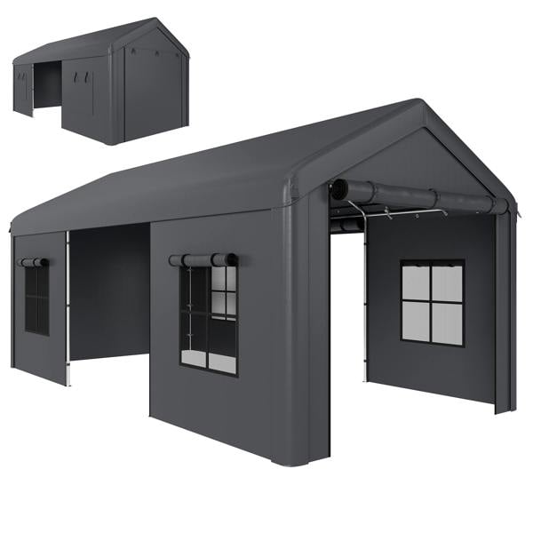 Built around a galvanised steel frame, this carport is designed to stay steady outside with the included stakes, screws and ropes. Three zipped doors make access straightforward, while mesh windows help improve airflow and let in light for a more comfortable, usable space.