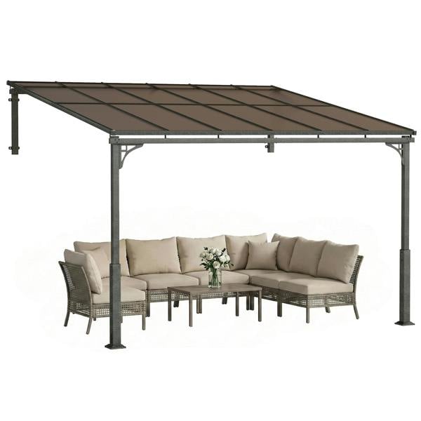 Transform your outdoor space with the Outsunny Wall-Mounted Pergola. Securely anchored to your wall, it provides a stable shelter with a sloped polycarbonate roof that protects against sun, rain and snow. Its heavy-duty galvanised frame with reinforced columns ensures long-lasting strength, while the spacious design creates the desired spot for BBQs, dining, or relaxing with family and friends year-round.