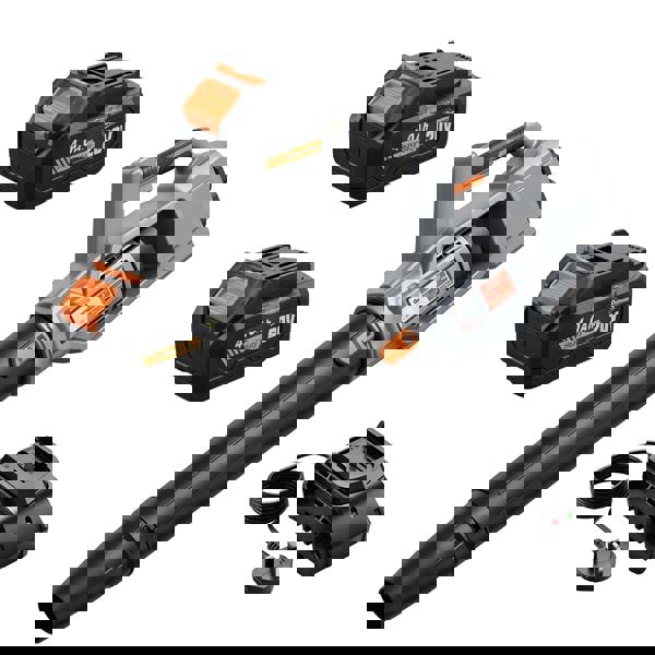 Turbo boost mode increases air speed up to 270 km/h with a maximum air volume of 13.5 m³/min, giving you extra force when leaves and debris are more stubborn. For day-to-day use, three airflow speeds can be selected via an easy-access control button. A lightweight 3.8 kg design supports comfortable one-handed handling, while dual 4.0Ah lithium batteries provide up to 30 minutes of cordless operation.