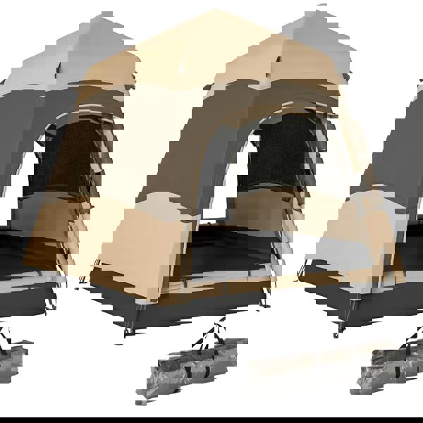 Made with 190T water-resistant polyester fabric, it features mesh windows to encourage airflow, alongside 2 doors for easier access. Inside, two storage pockets help keep small essentials organised. When it’s time to pack away, the tent is designed to be easy to store and carry, making it well suited to travel between campsites.
