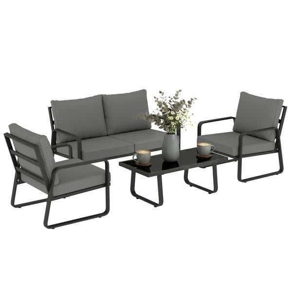Designed for relaxed outdoor entertaining, this Outsunny garden sofa set brings a considered, coordinated look to your patio or garden. The 4-piece set combines a powder-coated metal frame with thick seat and back cushions, creating a comfortable place to settle in with friends.