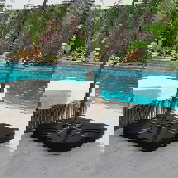 This Outsunny weights for parasol are great accessories to keep your parasol, umbrella steady. The parasol base weights come in 4 piece configuration to be placed on the cross feet of your umbrella. Made from a high density polyethylene material, our parasol bases can withstand most weather elements. Each of the pieces can be filled with water or sand to make them heavy and more secure. This patio umbrella base is a great essential to have as part of your umbrella to keep it safe and secure.