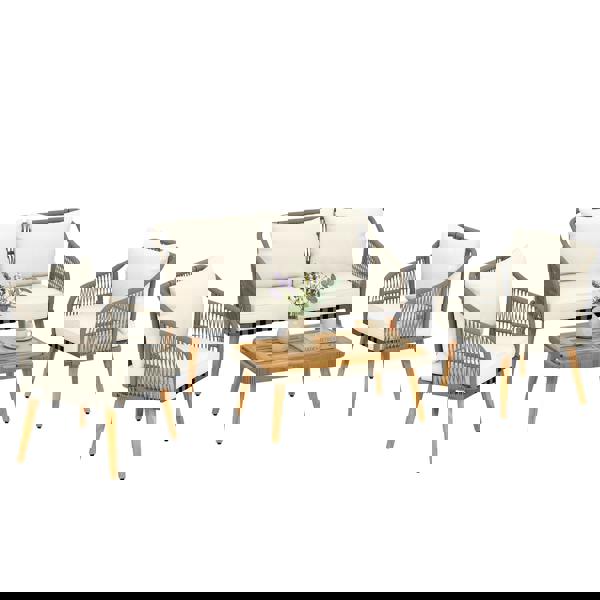 Designed for relaxed outdoor living, the Outsunny 4 Piece Rattan Garden Furniture Set brings together a sociable seating arrangement with considered detailing. The set includes a two-seater sofa, two armchairs and a coffee table, creating an inviting space for easy conversation and laid-back moments on the patio or in the garden.