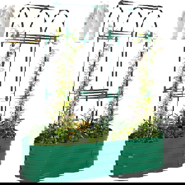 Designed for structured, space-efficient planting, the 4 x 2 x 4.6ft galvanised Raised Garden Bed with Trellis from Outsunny brings extra support and definition to your outdoor growing area. The integrated arch trellis encourages climbing plants to grow upwards, while also offering a practical place to hang pots, decorations or lights.