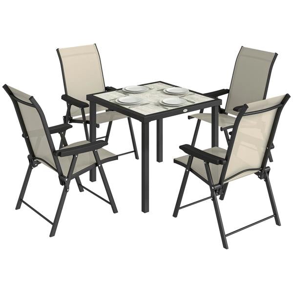 Designed for relaxed outdoor dining in compact spaces, the Outsunny outdoor dining set brings a clean, contemporary look to patios and smaller gardens. This five-piece set includes a square table and four chairs, offering a practical layout for everyday meals and easy-going entertaining.