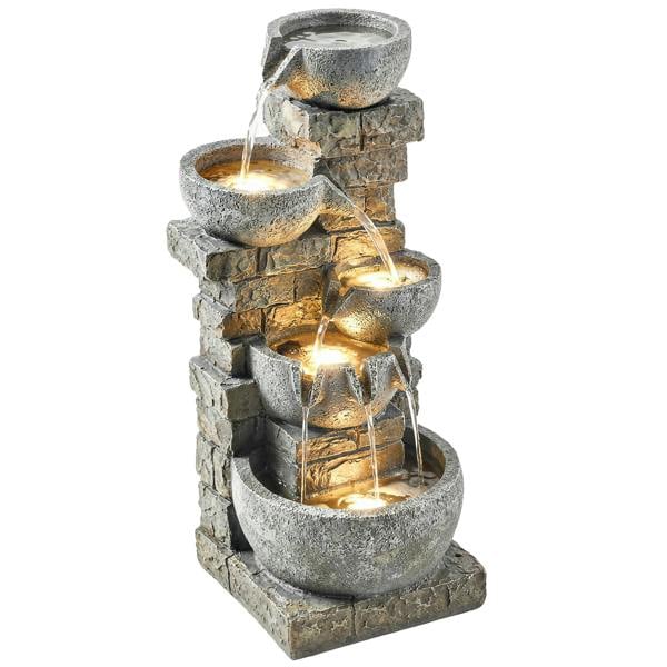Bring a calming focal point to your outdoor space with the Outsunny 5 Tiers Outdoor Water Fountain. Designed with five cascading tiers, it creates a gentle waterfall sound that adds a tranquil note to gardens and patios. A hand-painted, natural stacked-rock effect gives the piece an organic look, helping it sit comfortably among planting and outdoor décor.