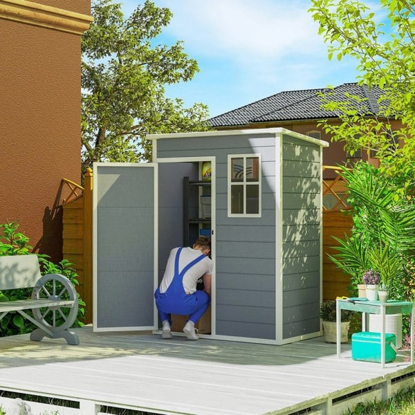 this plastic shed is tall enough for it all. Get out, get productive, get Outsunny.