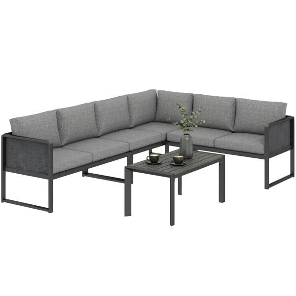 Designed to help you make the most of your outdoor space, the Outsunny 6 Seater Metal Garden Furniture Corner Sofa Set brings a flexible, lounge-ready layout to patios, balconies and conservatories. With three loveseats and a coordinating coffee table, it creates an inviting setting for relaxed hosting, from sunny afternoons to cooler evenings.