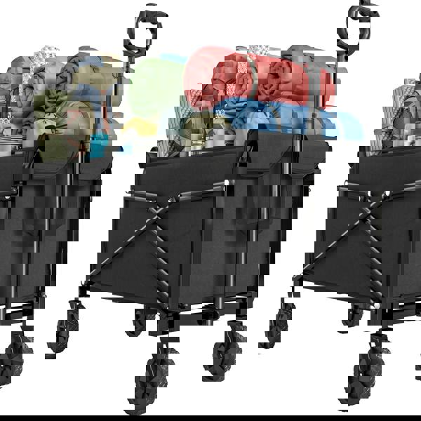 Does the thought of a family outing bring stress over packing everything? Juggling gear can be a real struggle, turning relaxation into a chore. Festival trolley from Outsunny changes that. It folds to just 14 cm for easy storage and has an adjustable handle for effortless pulling. With an 80 liter capacity, this trolley on wheels carries everything you need, letting you reclaim the joy and simplicity of your well-deserved weekends