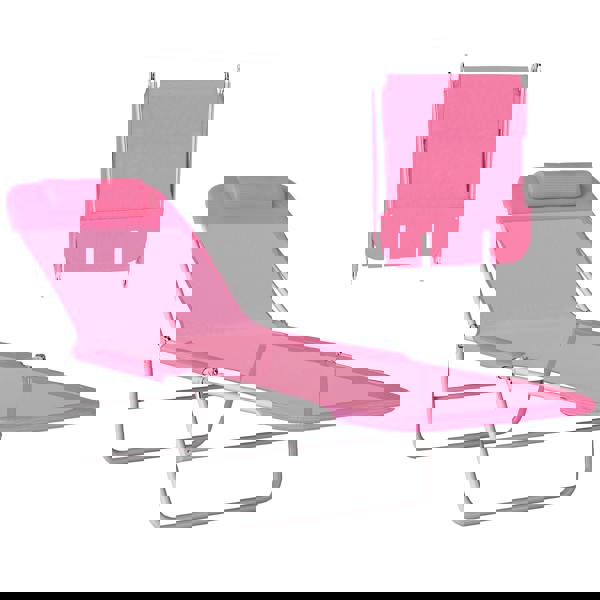 Designed for laid-back moments outdoors, the Outsunny Adjustable Sun Bed Garden Lounger Recliner Relaxing Camping Pink is a folding sun lounger that’s easy to take wherever you want to unwind. A powder-coated steel frame provides a supportive core, paired with a texteline fabric seat and a pillow for added comfort.
