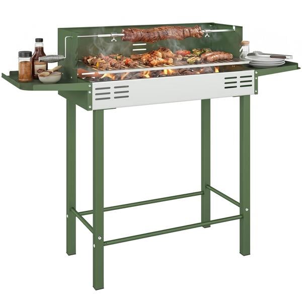 Delicious rotisserie style meat in your own home? Yes please. This open charcoal grill gives you your own spot to cook anytime in your private garden and outdoor areas. A sturdy stainless steel body, it comes with the bottom grilling area for cooking many different ingredients and a top spinning fork - perfect for chicken breasts, lamb legs and pork shoulders. Comes complete with a removable wind shield to safely protect the flames.
