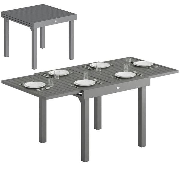 Elevate your outdoor dining with the Outsunny extendable garden table, expanding from 90 cm to 180 cm to seat four to eight people effortlessly – from cosy drinks to family feasts! Designed with a sleek slatted aluminium top, this patio table is rust-proof and ensures quick water drainage after rain. The scratch-resistant, UV-protected finish and reinforced frame offer a reliable spot for meals, while adjustable foot pads keep things steady on uneven surfaces.