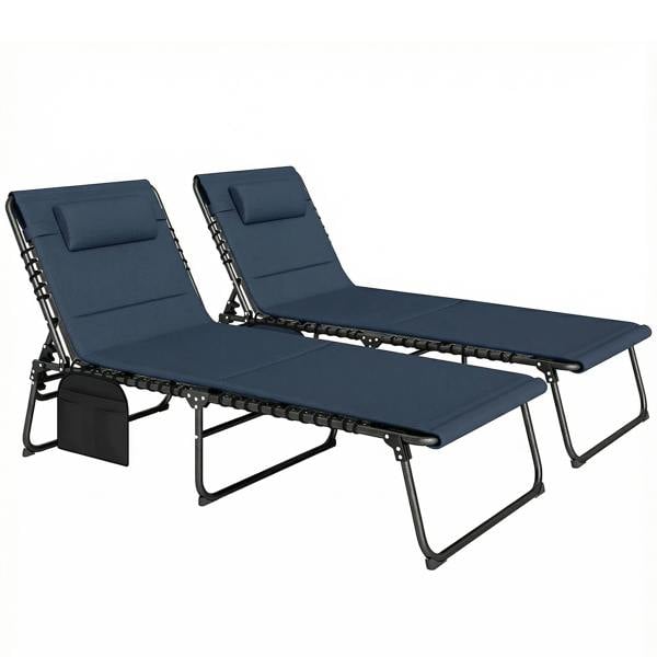 Designed for laid-back afternoons outdoors, this set of 2 folding sun loungers from Outsunny makes it easy to unwind in comfort, whether you are enjoying a quiet moment alone or relaxing with company. Finished in dark blue, each lounger pairs a supportive steel frame with breathable mesh for a lighter feel on warmer days.
