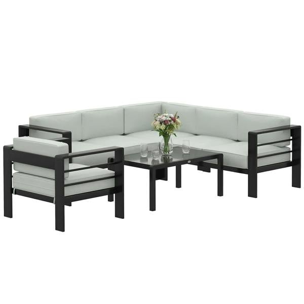 Simple and sleek with comfort at its core, this Outsunny garden corner sofa set is designed for relaxed outdoor living. Metal frames provide strength and suitability for outdoor use, while padded cushions on both the seats and backs help you settle in and unwind.