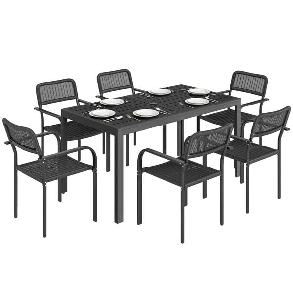 Designed for relaxed outdoor dining, the Outsunny Garden Dining Set brings a smart, space-conscious setup to patios and gardens. This seven-piece outdoor dining set includes a table and six chairs, creating a comfortable place to gather for meals and easy-going get-togethers.