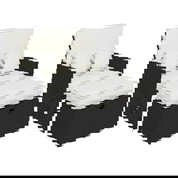 A two-piece garden day bed which can be used together or separately: lie or sit in the sun with this rattan lounger from Outsunny. The back on the sofa is adjustable to different positions. The footstool has storage to keep smaller pieces in a safe place. Both pieces come with padded cushions, with extra pillows, for comfort. Metal frame for a strong core, wrapped in PE wicker for extra durability. This outdoor daybed is complete with hinged sides which act as a side table.