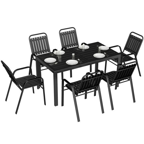 The Outsunny garden table and chairs set for 6 is a seven-piece patio dining set designed for relaxed outdoor meals and easy entertaining. With a faux wood-grain table top, it brings a natural look to your garden or patio while creating a practical centrepiece for everyday dining and get-togethers.