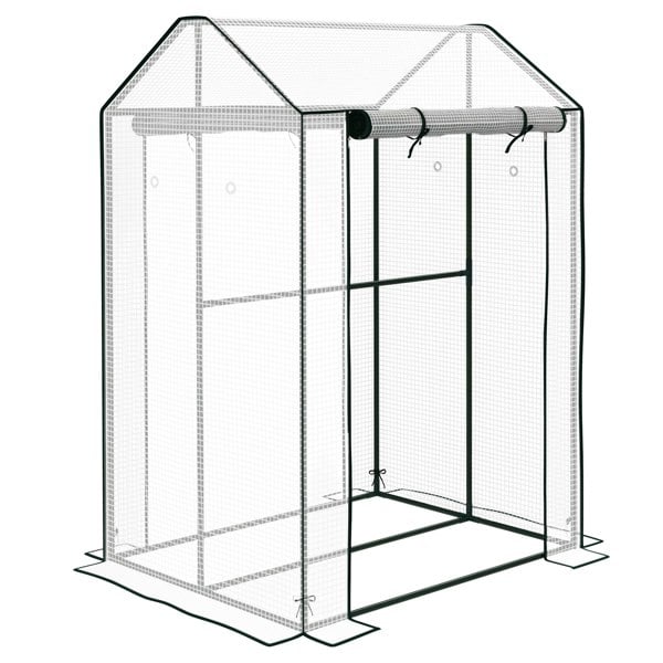 Home growing - twice over. This Outsunny 80 x 100cm greenhouse comes in a two-room design, so you can separate plants to how you want. With a steel frame, the core is sturdy, whilst the plastic cover creates a protective shield for inside - plants grow with cover against wind and rain. 10cm cover edges to bury into soil for extra stability. Easy to access and let air inside - simply roll up the two doors and hold them in place.