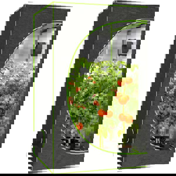 From Outsunny, this reflective Grow Tent creates a dedicated indoor space for cultivating plants, with a light-maximising interior designed to keep illumination focused where it is needed. Finished in black and green, it offers a practical setup for home growing, with a large zipped door for straightforward access and a back viewing window that lets you check on plants or ventilation without fully opening the tent.