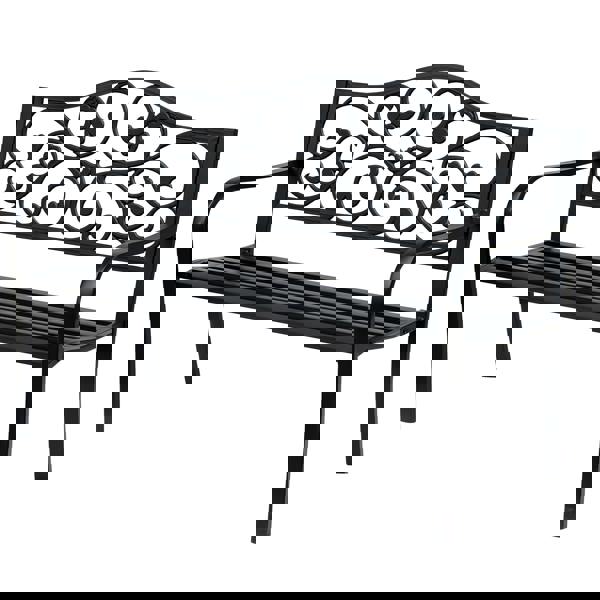 Bring a decorative touch to your patio or garden with the Outsunny metal garden bench, a two-seater design finished in black with an intricate floral backrest. Designed for outdoor use, it offers a comfortable spot to sit back in the sunshine, whether you are sharing the space or stretching out with room to spare.