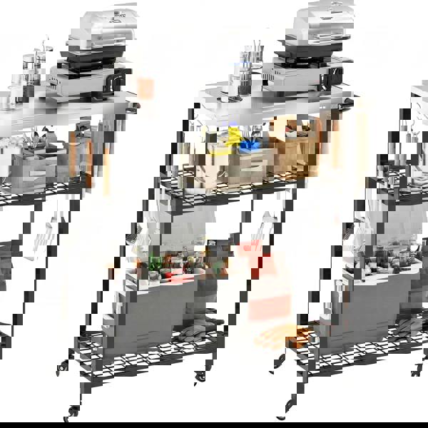 Bbq table chaos during a lively BBQ can be frustrating, with no space for prepping food and everything scattered. This constant back-and-forth means missing moments with friends. The Outsunny pizza oven table offers a solution, featuring a spacious 80 x 51 cm stainless steel top. It glides smoothly from kitchen to patio on four casters and locks securely for stable use. With two open shelves, your ingredients and gas tank are always neatly arranged