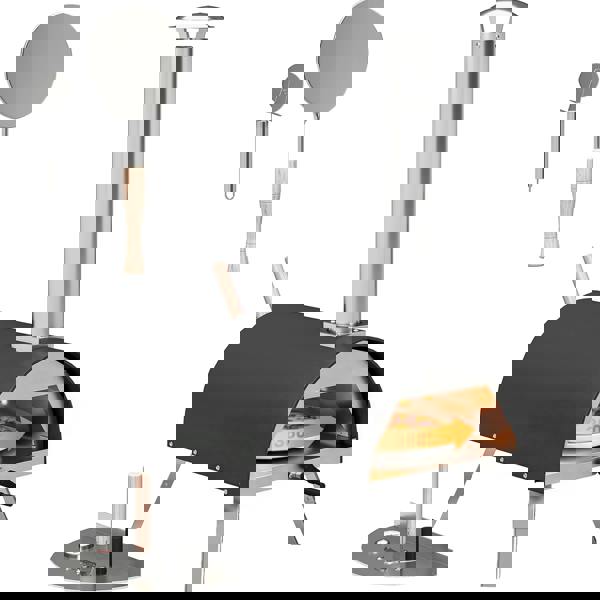 An external handle rotates the 32cm cordierite pizza stone, while the built-in thermometer and removable door help you manage temperature during cooking. A separate rear fuel port lets you top up without interrupting heat, and once service is over, the pull-out grate and ash tray at the back make clearing away more straightforward. For easier storage and transport, the chimney is removable.