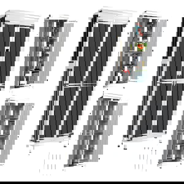 Keep outdoor essentials organised with the Outdoor Storage Cabinet from Outsunny, a compact garden shed designed to bring order to smaller spaces. Finished in white and black, it combines a fir wood and galvanised steel structure with an asphalt roof to help protect stored items from rain. An elevated base with plastic feet further helps reduce exposure to ground moisture, so tools and accessories are kept neatly off the ground.