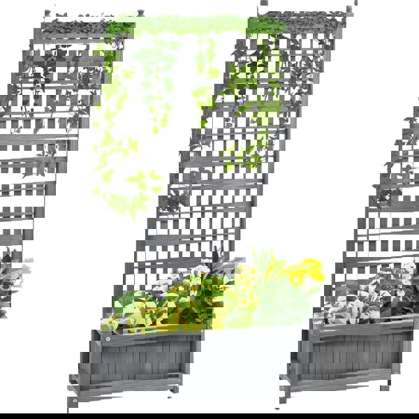 A two-in-one design, in its most simple form. Merging together a planting box and back trellis, you can grow climbing plants, flowers, vegetables and more together. Made from wood, the structure is strong