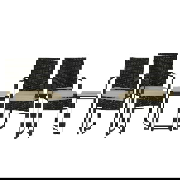 Designed for compact outdoor corners, the Outsunny Rattan Bistro Set brings a considered look and comfortable seating to balconies, patios and smaller garden spaces. This 3-piece set includes a bistro table and two chairs, finished in brown PE rattan with khaki cushions and black detailing for a smart, coordinated feel.