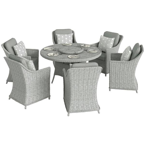 Designed for relaxed outdoor dining, the Outsunny Rattan Garden Dining Set with Turntable brings a considered, sociable feel to patios and garden spaces. This six-seater set pairs a round dining table with matching chairs, finished in grey rattan for a cohesive look that suits everything from family meals to weekend entertaining.
